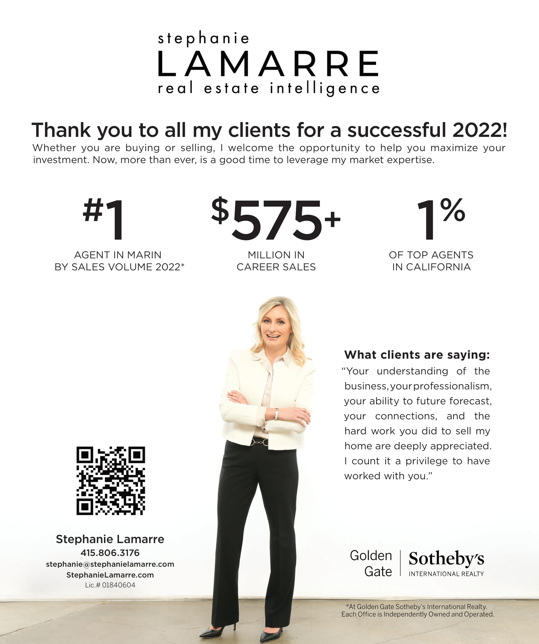 Stephanie gives her clients the “insider edge” in real estate—including intimate knowledge of the market trends, neighborhoods, schools, remodeling services, staging, and myriad other resources that make life easier for both buyers and sellers.