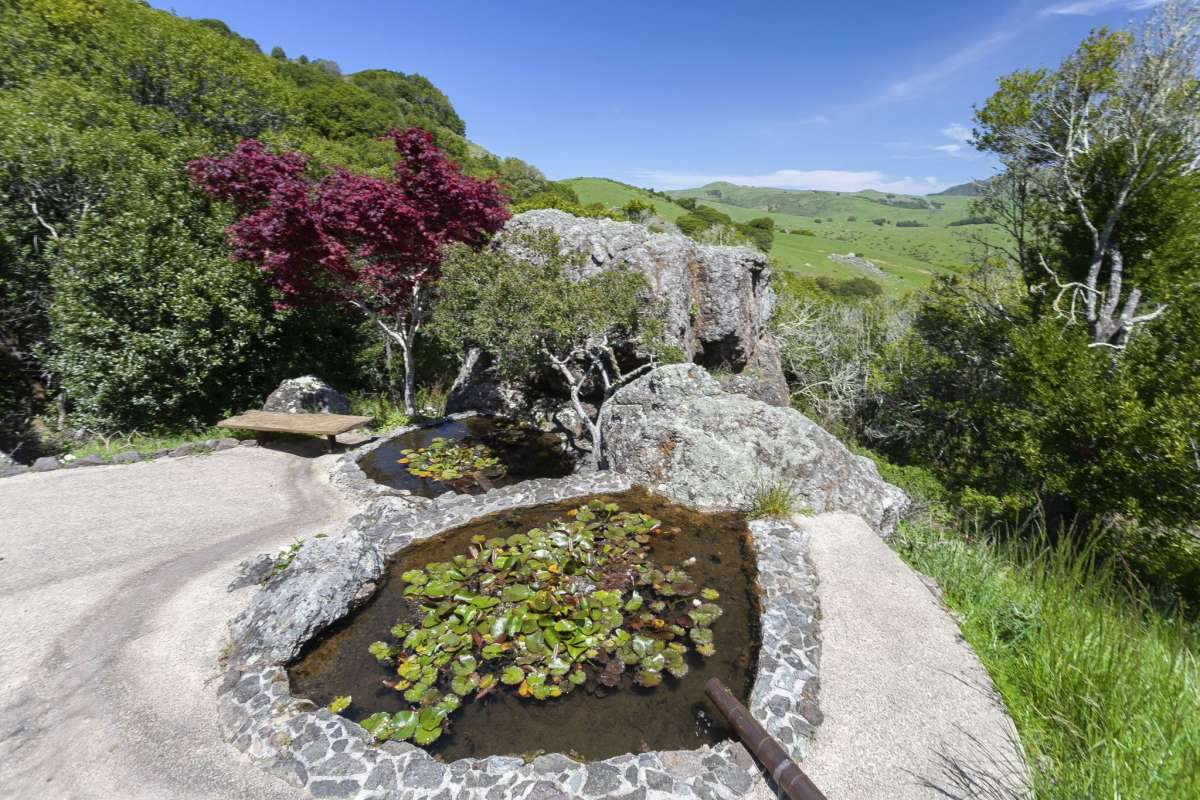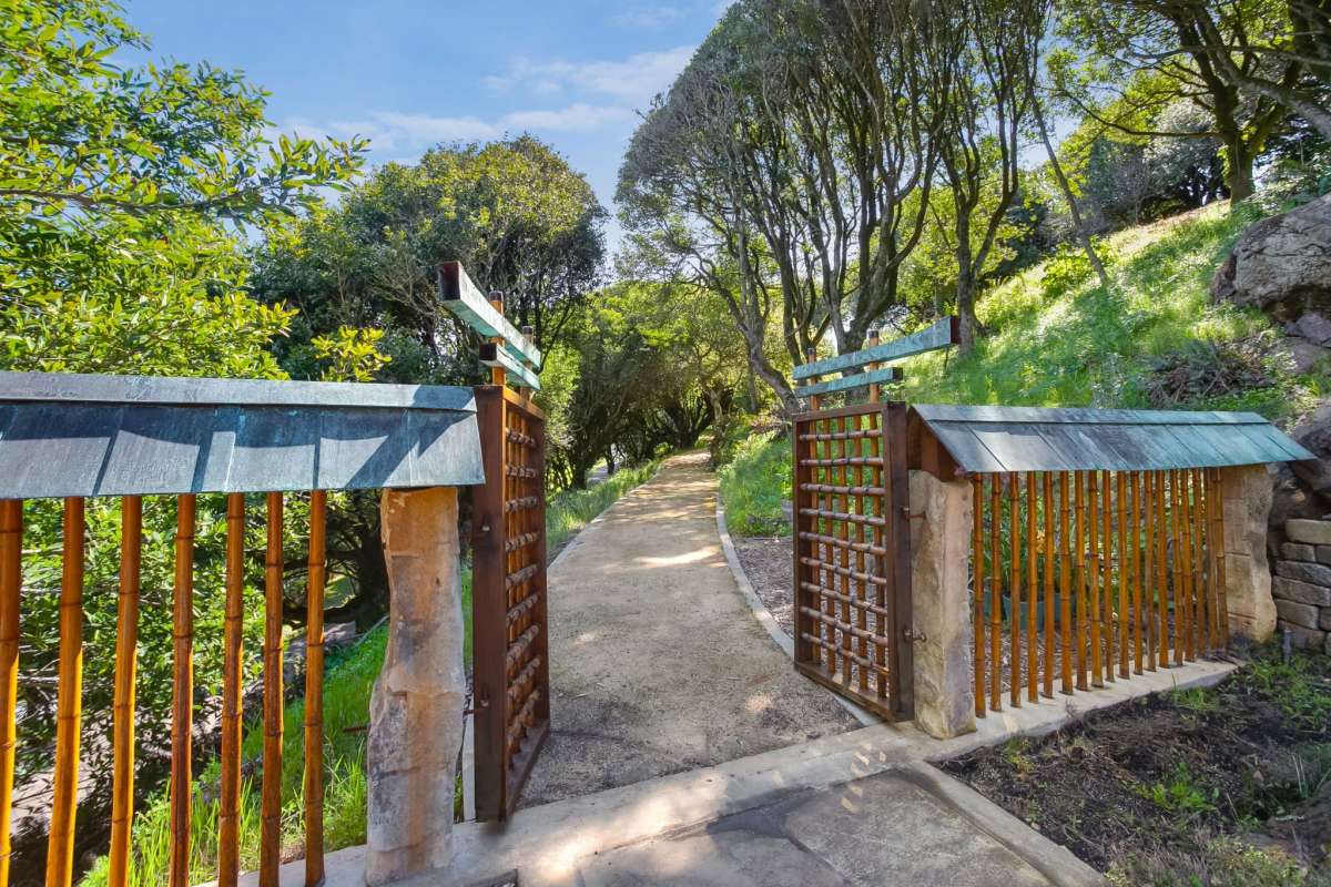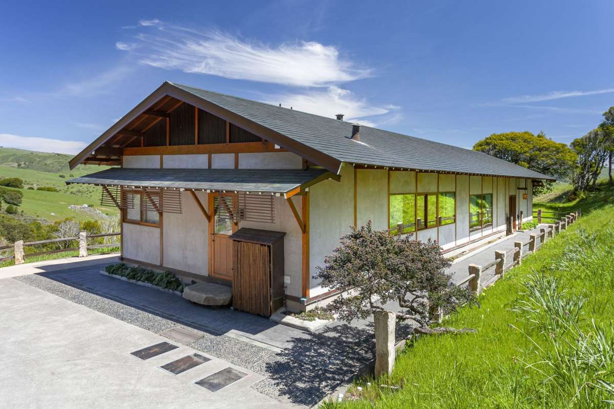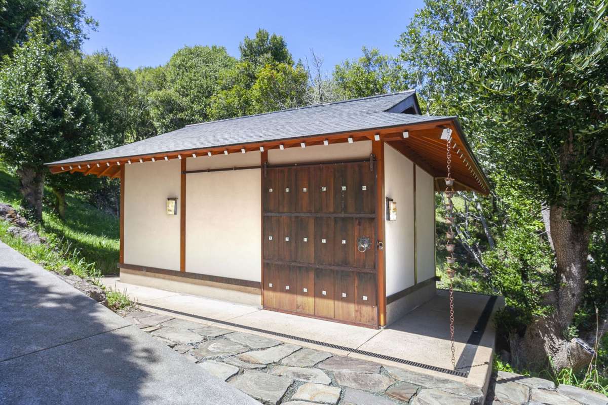 West Wind Estate at 333-345 Willow Road in Nicasio includes 32 acres on Black Mountain, which the current owners purchased in 1985 when it was vacant land. Owner John Klock and his wife wanted to build their vision of “Japanese zen living” and enlisted renowned architect Len Brackett, who also designed Larry Ellison’s iconic Japanese teahouse in Atherton. Each structure utilized Japanese construction, meaning there are no nails, custom wood throughout and an emphasis on indoor/outdoor living.